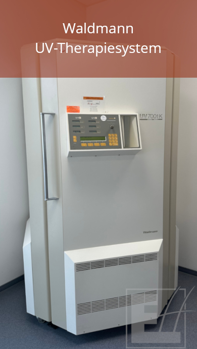 - UVB-Ganzkörperbestrahlung für die Therapie von Schuppenflechte, Ekzemen, Juckreiz und Weißfleckenkrankheit.